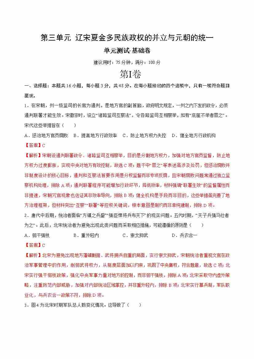 首页 > 全部 > 单元测试 > 第三单元 辽宋夏金多民族政权的并立与元朝的统一(单元测试·基础卷)(教师版)