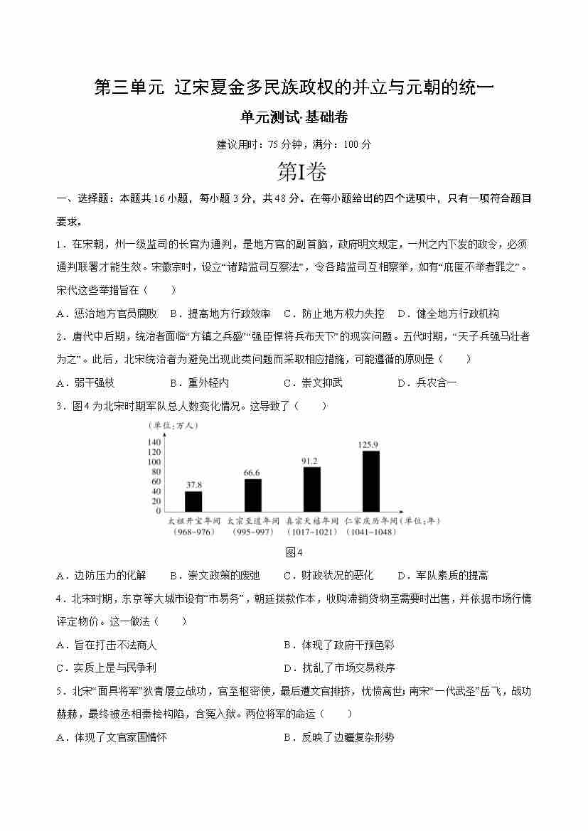 首页 > 全部 > 单元测试 > 第三单元 辽宋夏金多民族政权的并立与元朝的统一(单元测试·基础卷)(考试版A4)