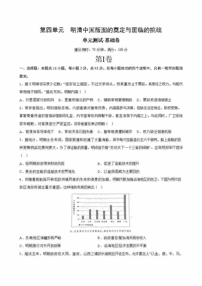 首页 > 全部 > 单元测试 > 第四单元 明清中国版图的奠定与面临的挑战(单元测试·基础卷)(考试版A4)