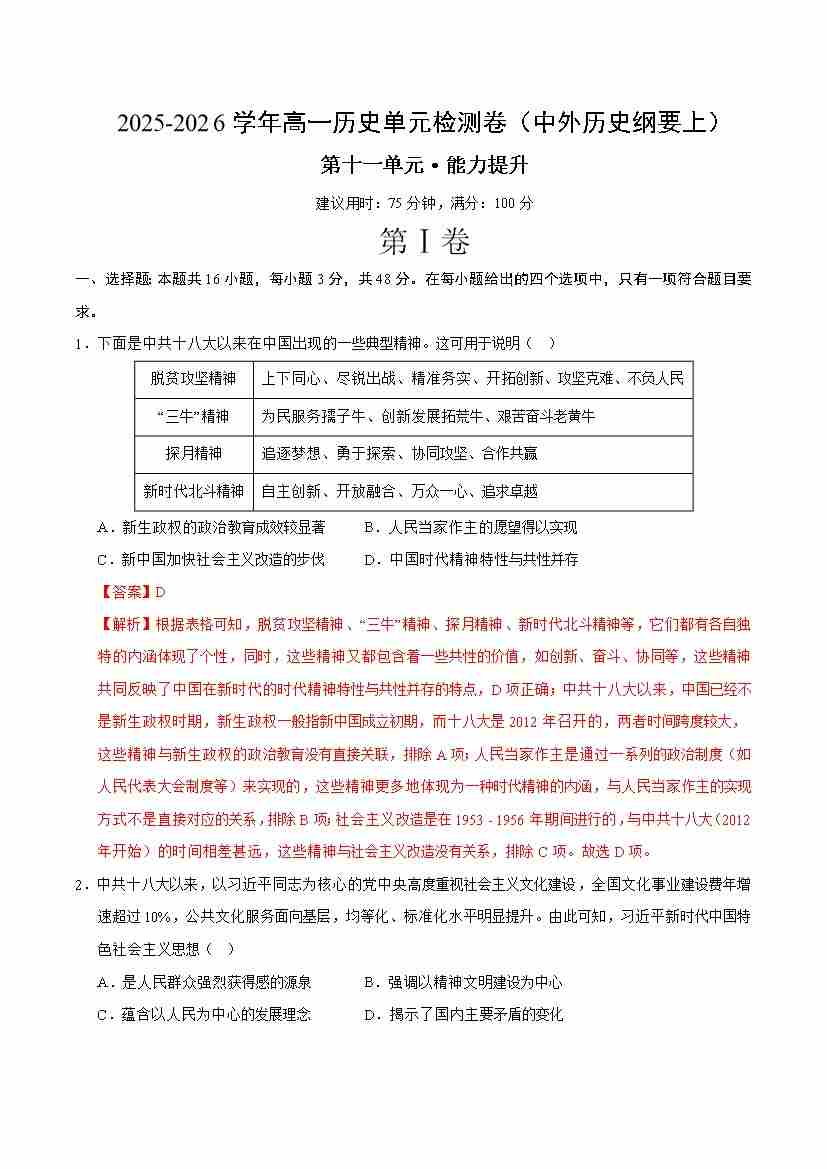 首页 > 全部 > 单元测试 > 高一历史中外历史纲要(上)第十一单元测试·提升卷(教师版)