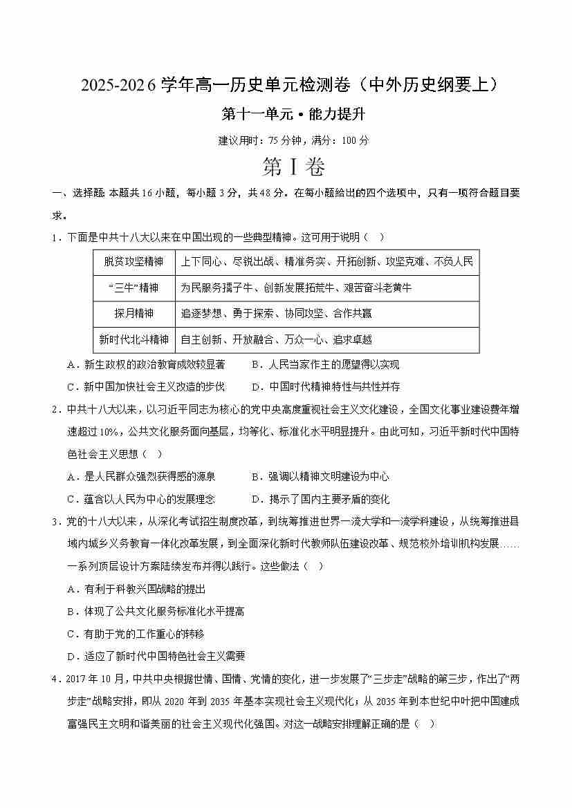 首页 > 全部 > 单元测试 > 高一历史中外历史纲要(上)第十一单元测试·提升卷(考试版A4)