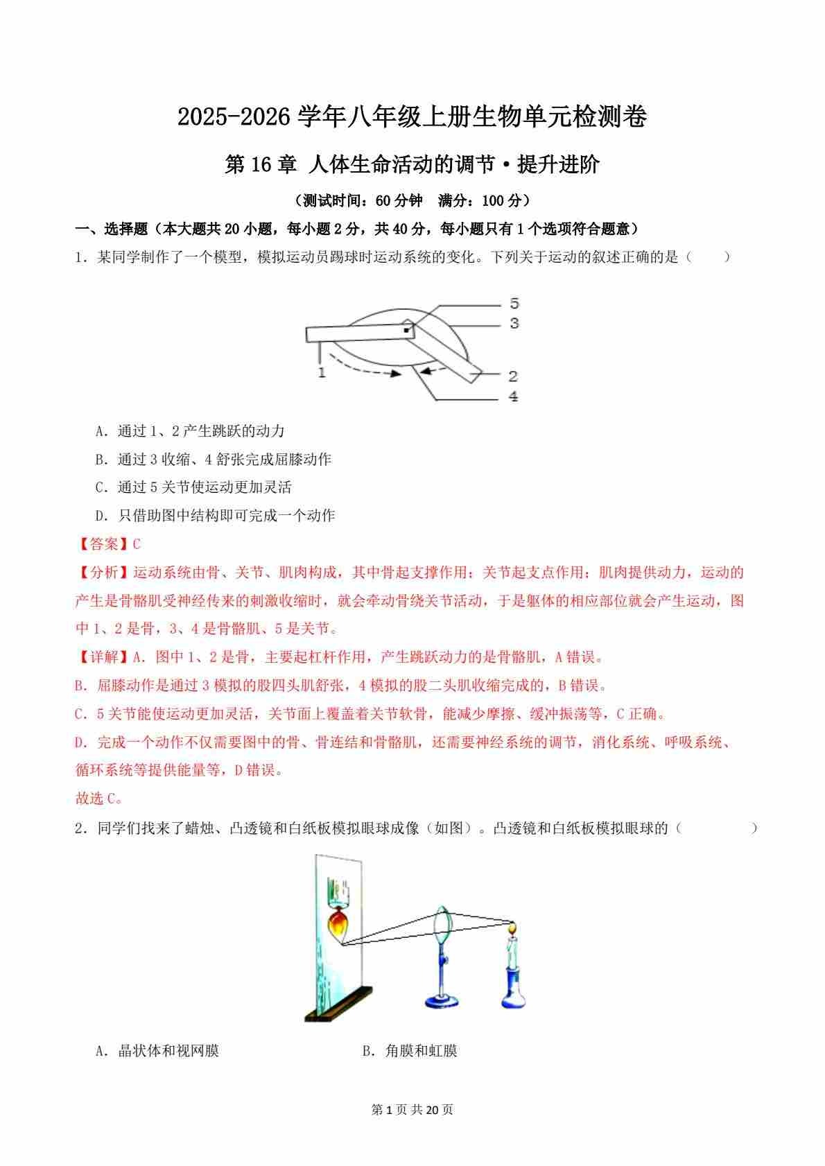 首页 > 全部 > 单元提升卷 > 第16章 人体生命活动的调节(单元测试·提升卷)(解析版)