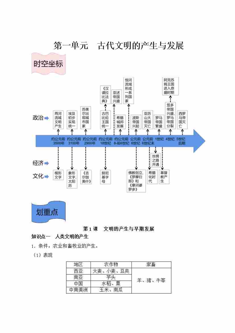 首页 > 全部 > 必备知识 > 纲要下册 第一单元 古代文明的产生与发展-(统编版•)(含答案)