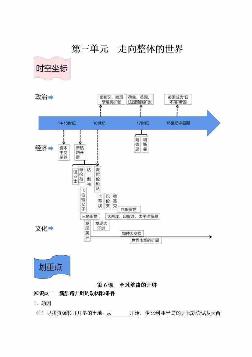 首页 > 全部 > 必备知识 > 纲要下册 第三单元 走向整体的世界-(统编版•)(含答案)