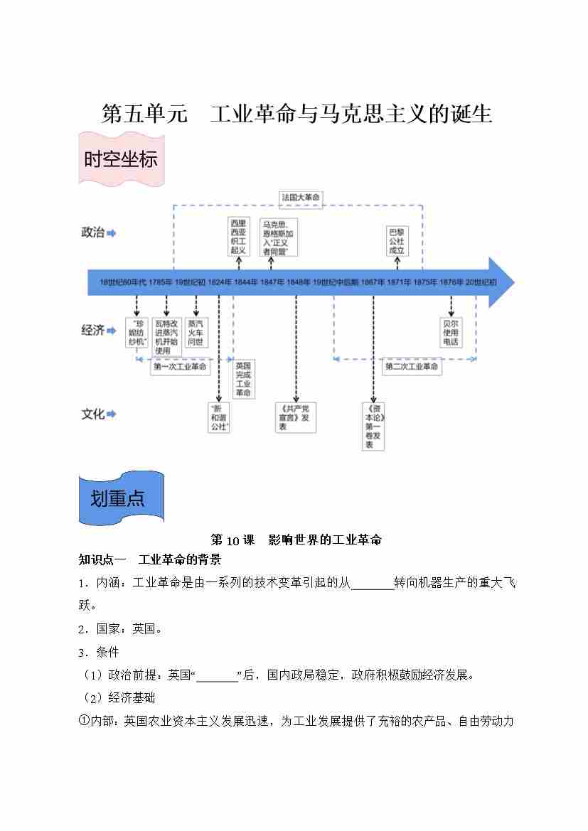 纲要下册 第五单元 工业革命与马克思主义的诞生-(统编版•)(含答案)