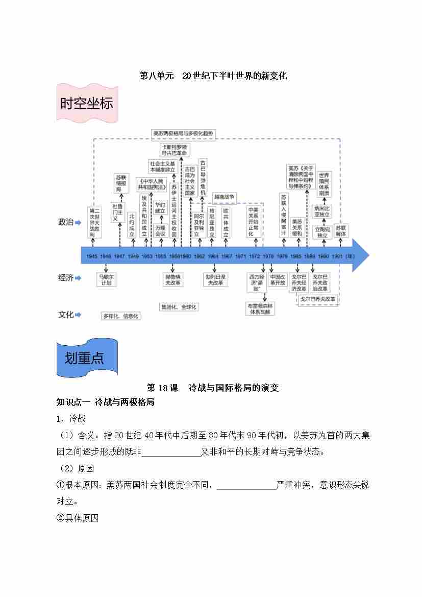首页 > 全部 > 必备知识 > 纲要下册 第八单元 20世纪下半叶世界的新变化-(统编版•)(含答案)