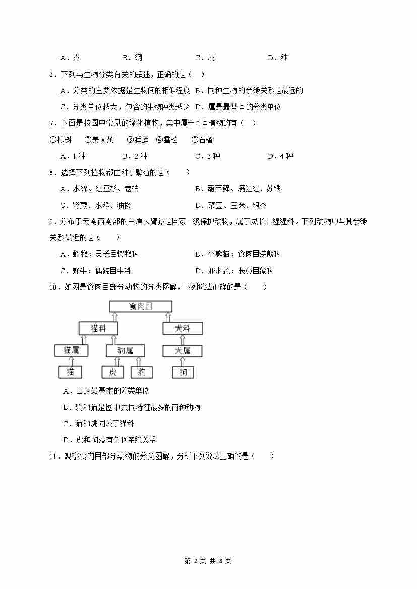 首页 > 全部 > 单元培优卷 > 第4章 生物分类的方法(满分培优卷)(原卷版)