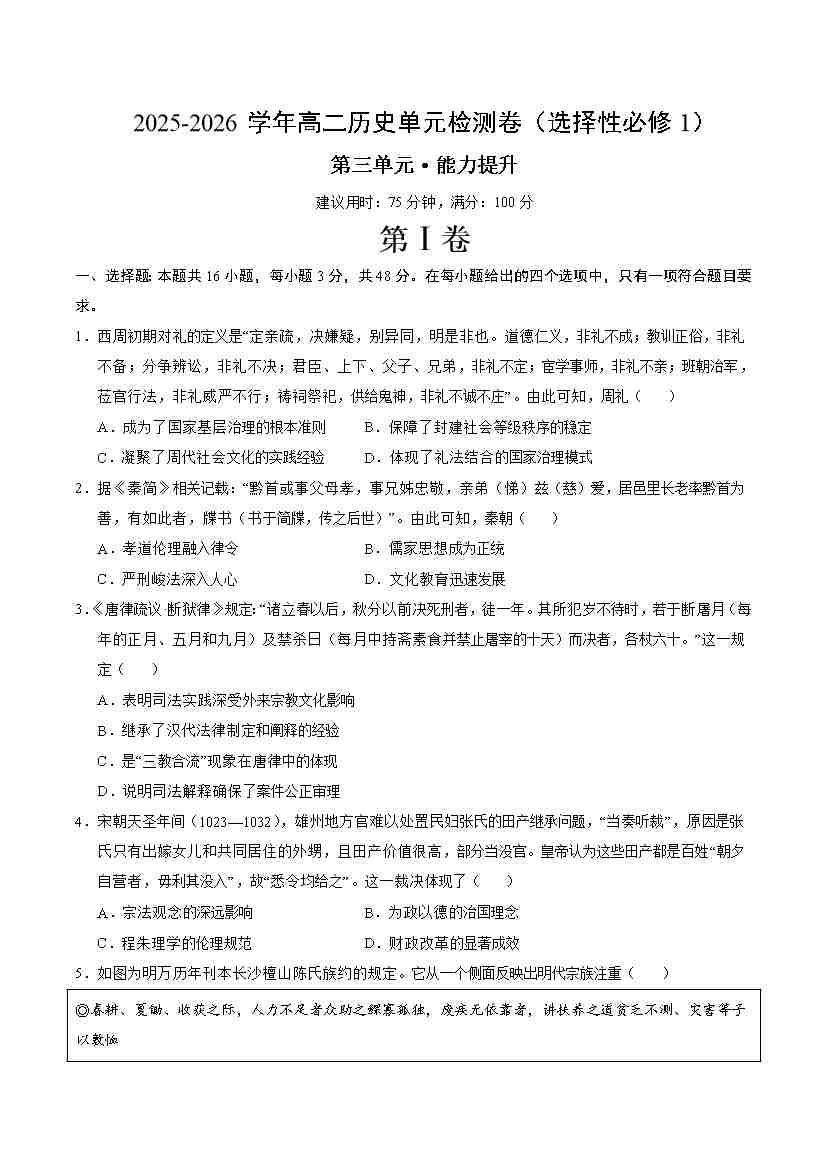 首页 > 全部 > 单元测试 > 高二历史选择性必修1第三单元测试·提升卷(考试版A4)