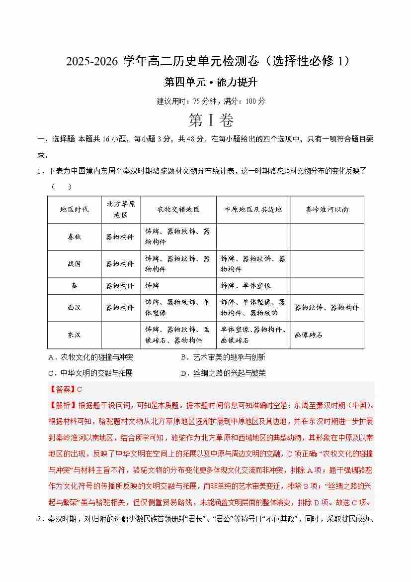 首页 > 全部 > 单元测试 > 高二历史选择性必修1第四单元测试·提升卷(教师版)