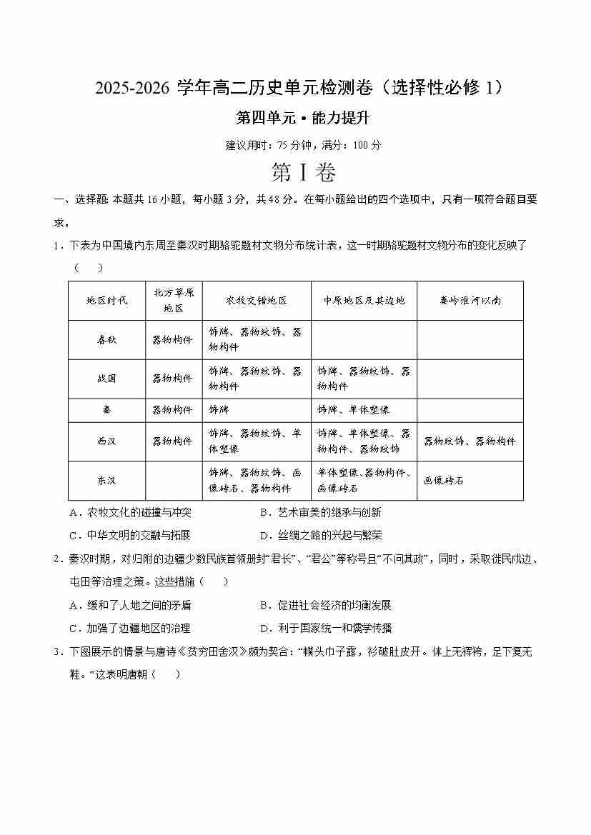首页 > 全部 > 单元测试 > 高二历史选择性必修1第四单元测试·提升卷(考试版A4)