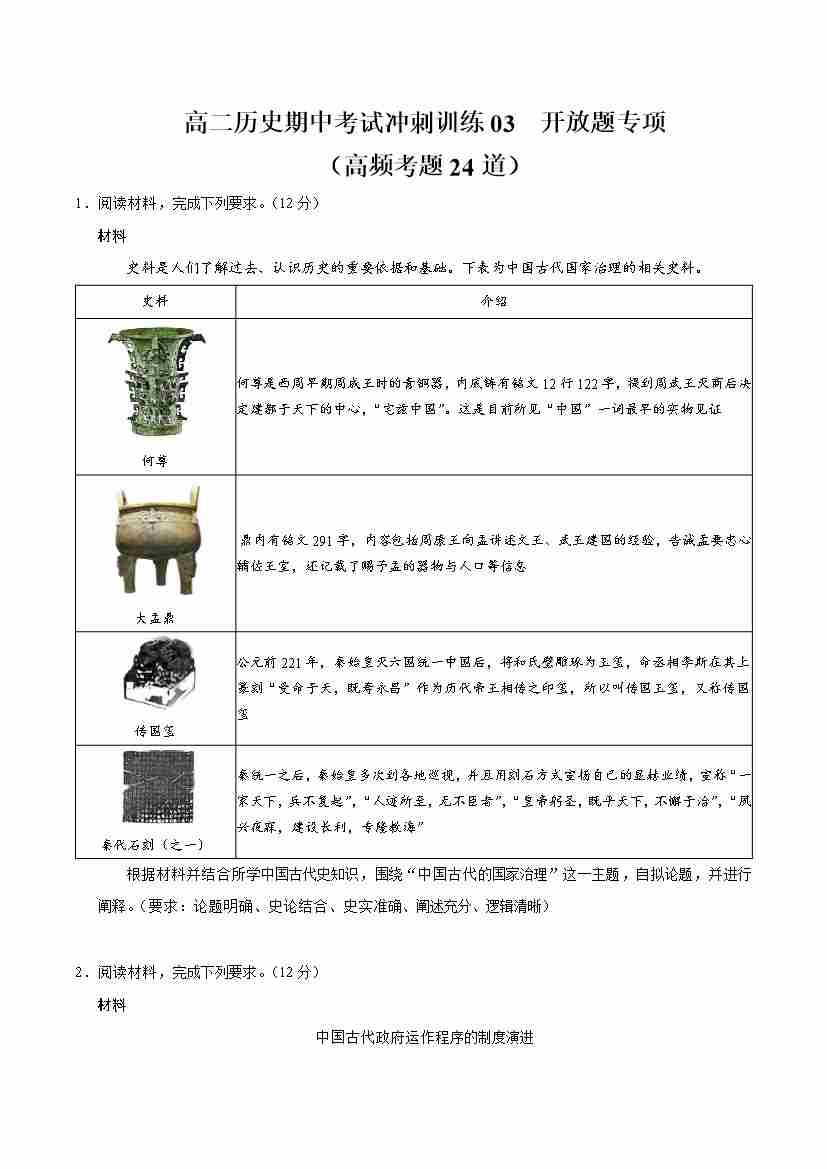 首页 > 全部 > 期中专项 > 专题03 高二历史期中复习·开放题高频24题(期中专项训练)(学生版)