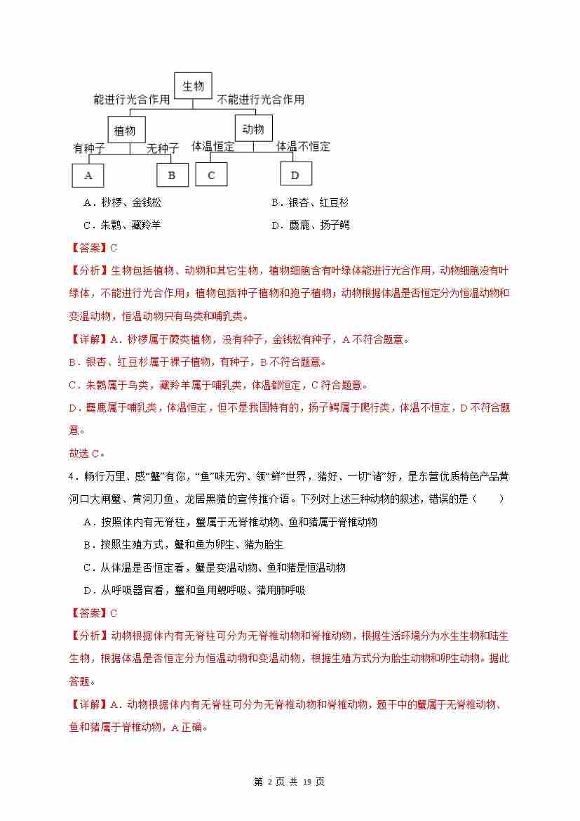 首页 > 全部 > 单元培优卷 > 第4章 生物分类的方法(基础通关卷)(解析版)