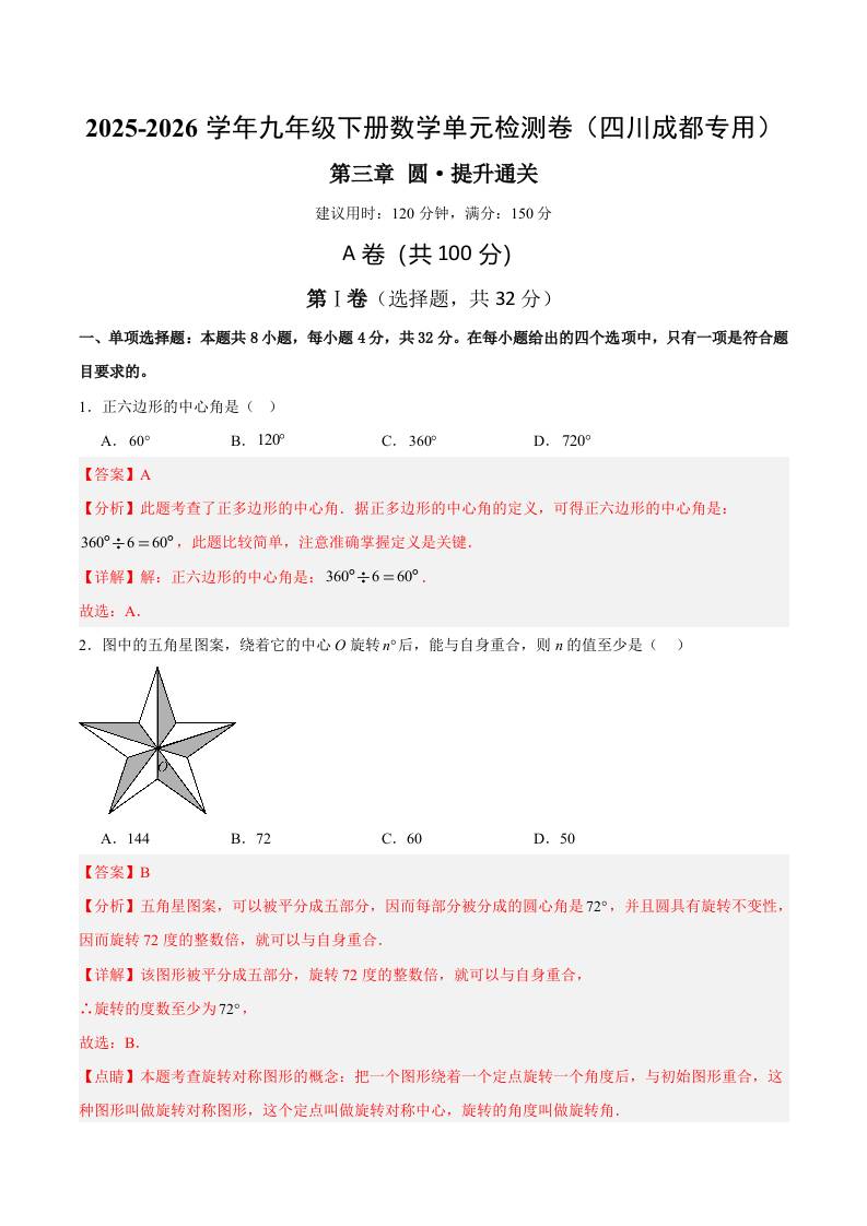 九下数学第三章 圆测试·提升卷(四川成都专用)(解析版)