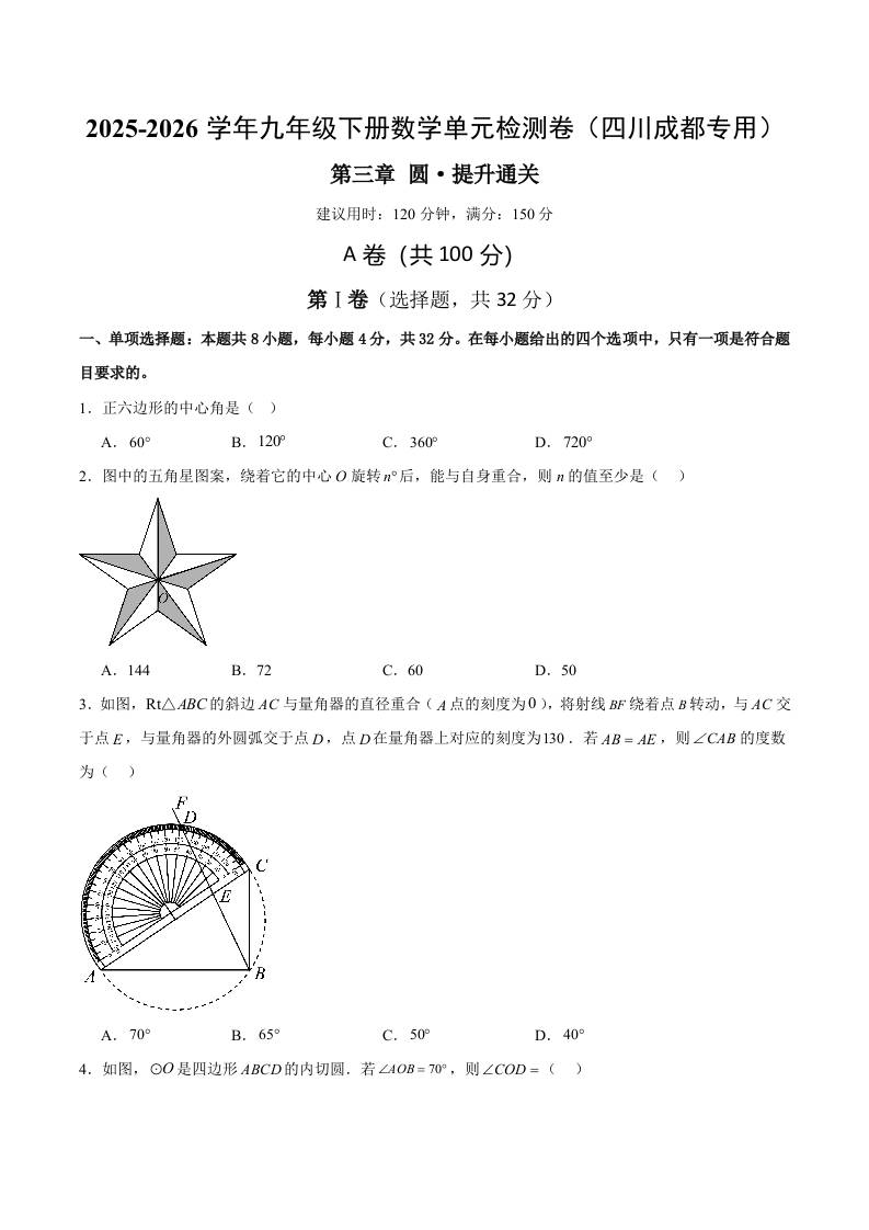 首页 > 全部 > 单元测试 > 九下数学第三章 圆测试·提升卷(四川成都专用)(考试版A4)