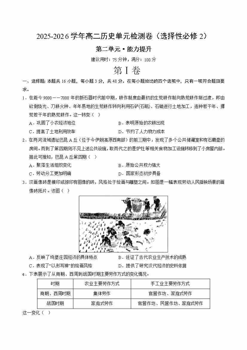首页 > 全部 > 单元测试 > 高二历史选择性必修2第二单元测试·提升卷(考试版A4)