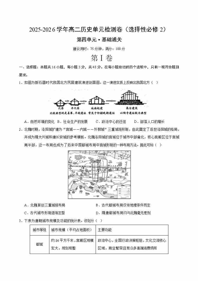 首页 > 全部 > 单元测试 > 高二历史选择性必修2第四单元测试·基础卷(考试版A4)