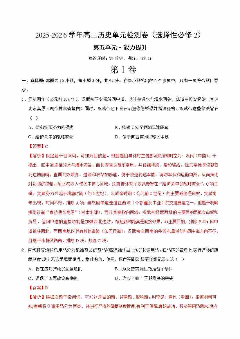 首页 > 全部 > 单元测试 > 高二历史选择性必修2第五单元测试·提升卷(解析版)