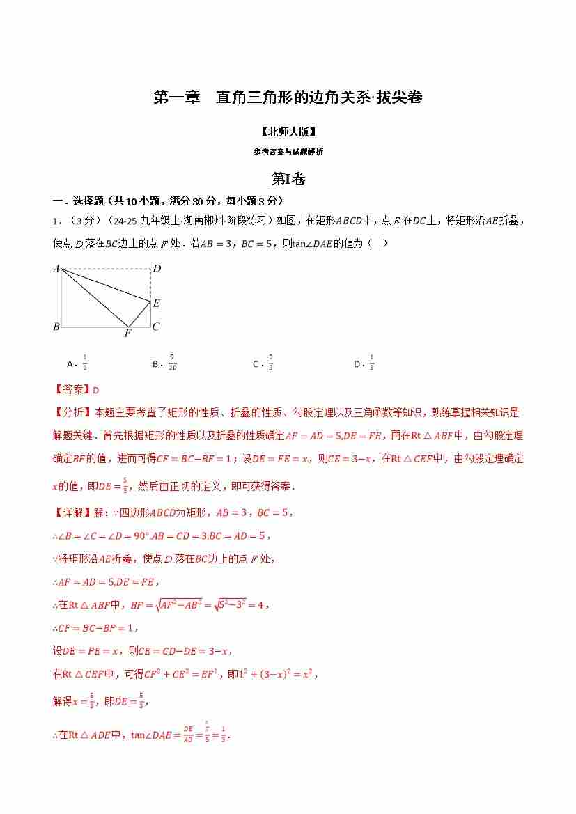 第一章 直角三角形的边角关系(举一反三单元测试·拔尖卷)(解析版)