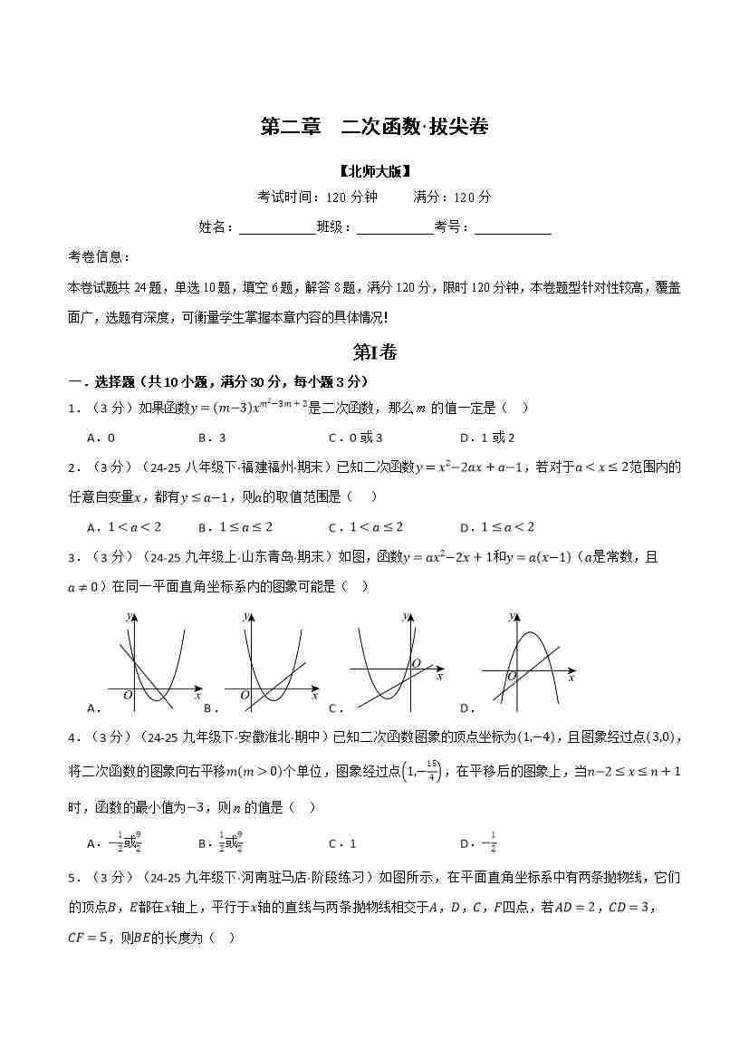 首页 > 全部 > 举一反三 > 第二章 二次函数(举一反三单元测试·拔尖卷)(原卷版)