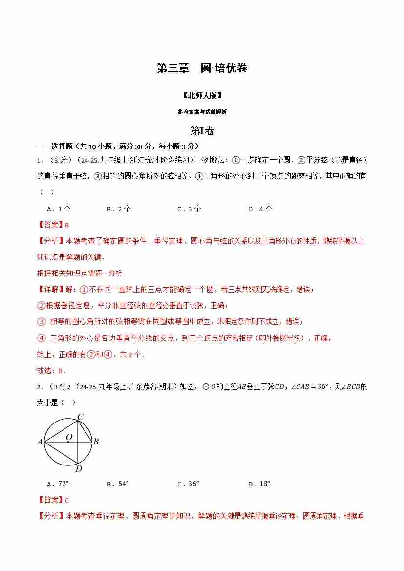 首页 > 全部 > 举一反三 > 第三章 圆(举一反三单元测试·培优卷)(解析版)