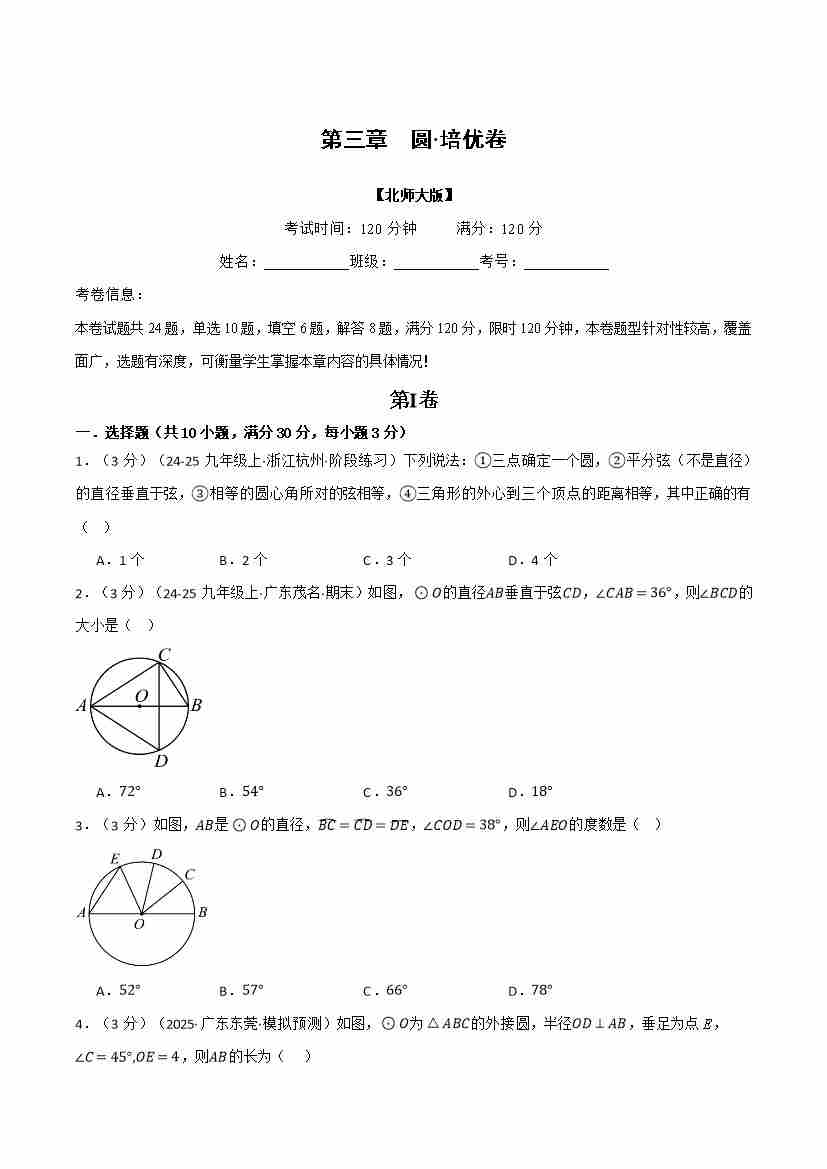 首页 > 全部 > 举一反三 > 第三章 圆(举一反三单元测试·培优卷)(原卷版)