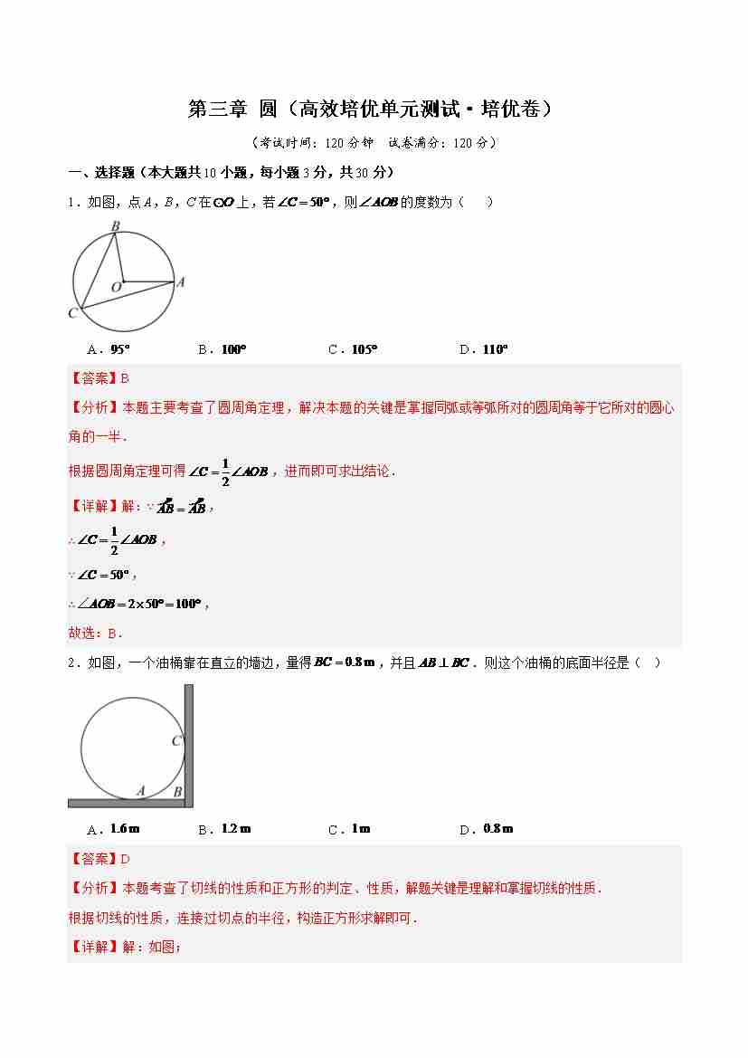 首页 > 全部 > 综合检测 > 第3章 圆(高效培优单元测试·培优卷)(解析版)