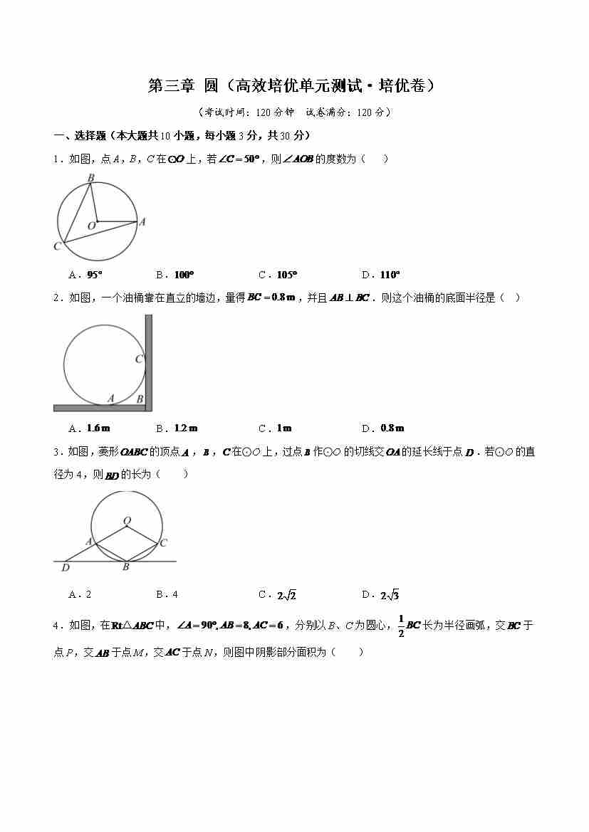 首页 > 全部 > 综合检测 > 第3章 圆(高效培优单元测试·培优卷)(原卷版)