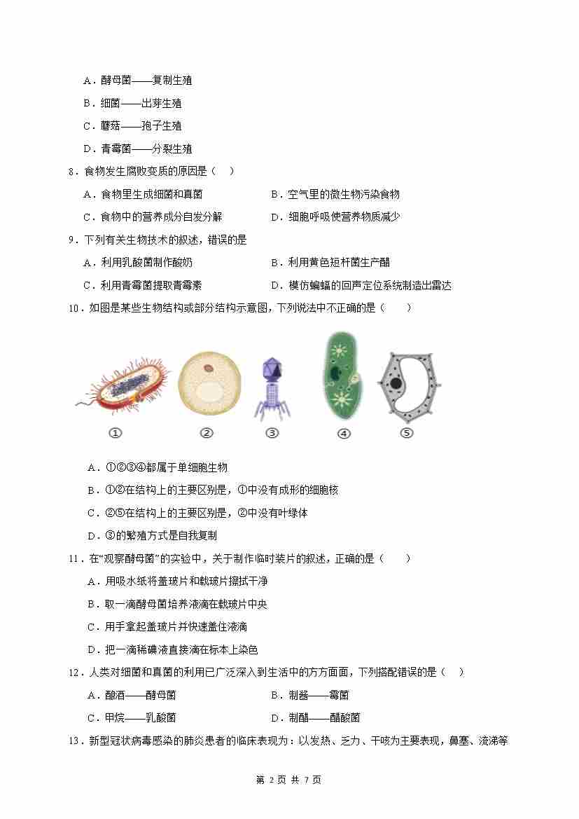 第3章 微生物(基础通关卷)(原卷版)