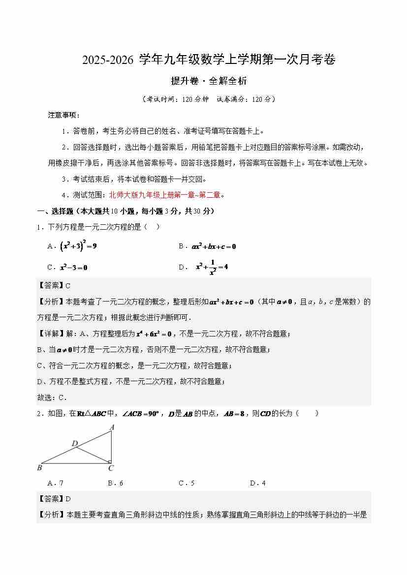 首页 > 全部 > 第一次月考 > 九年级数学上学期第一次月考(高效培优·提升卷)(全解全析)