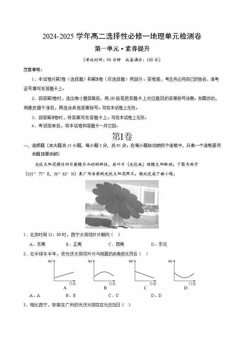 人教版2019选择性必修1地理第一章测试·提升卷(考试版A4)