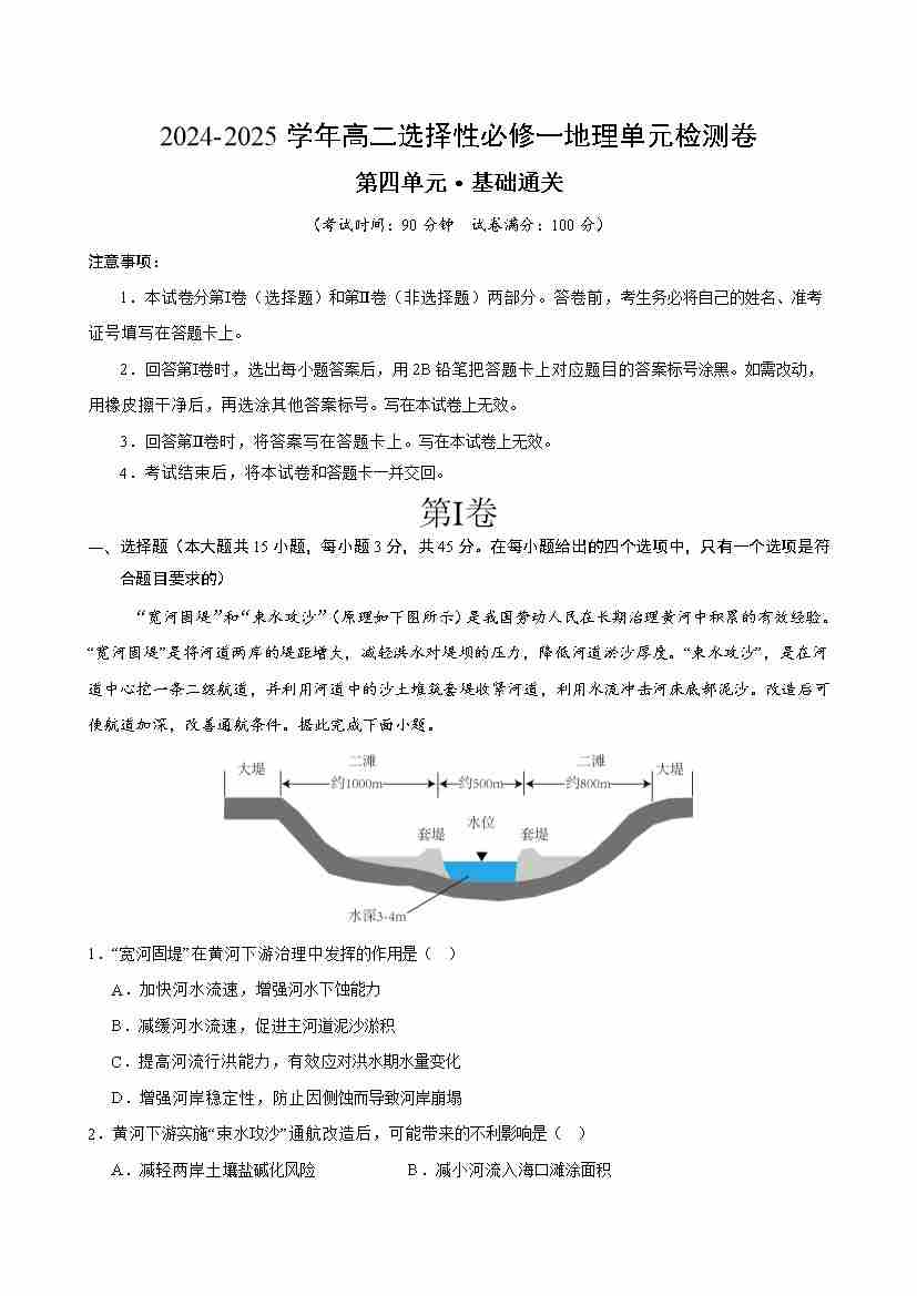 人教版2019选择性必修1地理第四章测试·基础卷(考试版A4)