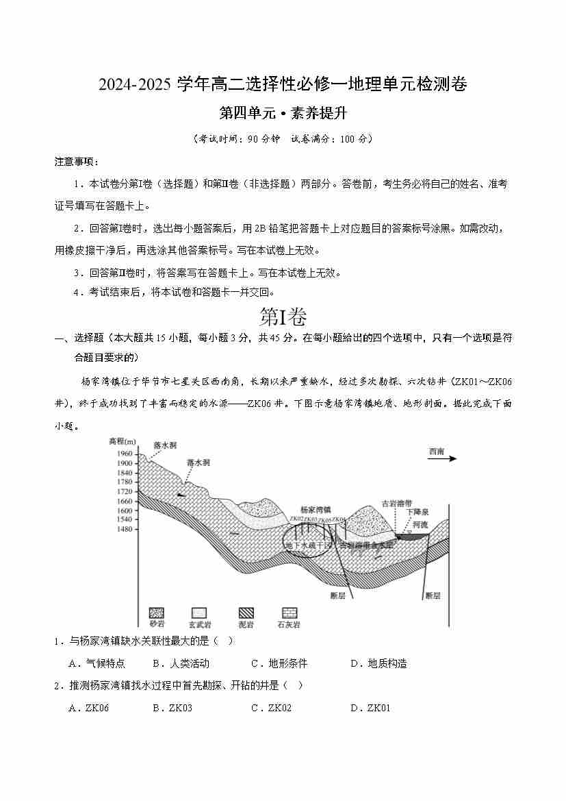 首页 > 全部 > 单元测试 > 人教版2019选择性必修1地理第四章测试·提升卷(教师版)