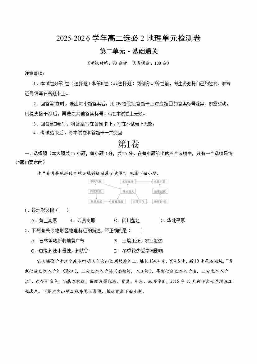 第二章《资源、环境与区域发展》测试·基础卷(考试版A4)
