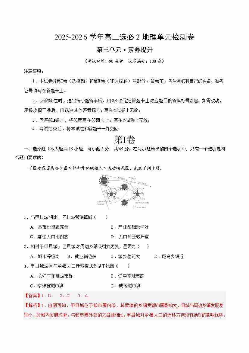 首页 > 全部 > 单元测试 > 第三章《 城市、产业与区域发展》测试·提升卷(解析版)