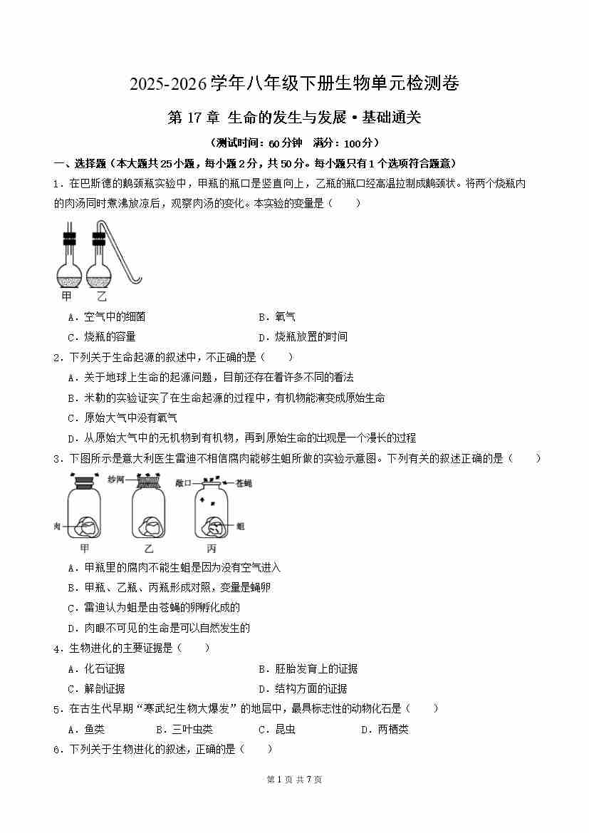 首页 > 全部 > 单元测试 > 第17章 生命的发生与发展(单元测试·基础卷)(考试版A4)