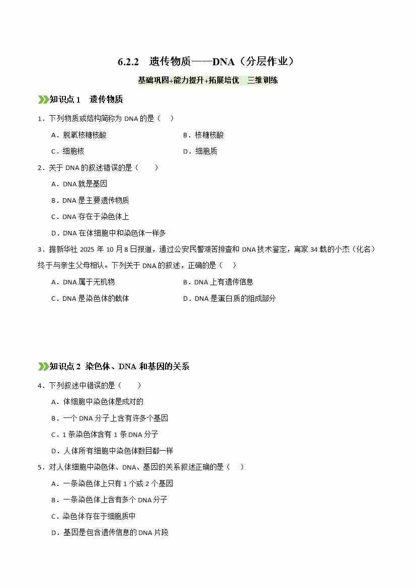 6.2.2 遗传物质——DNA(分层作业)(原卷版)