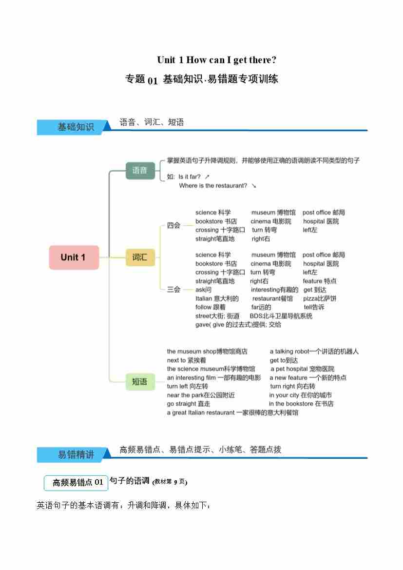 Unit1(易错题专项训练·基础知识)英语人教PEP版六年级上册