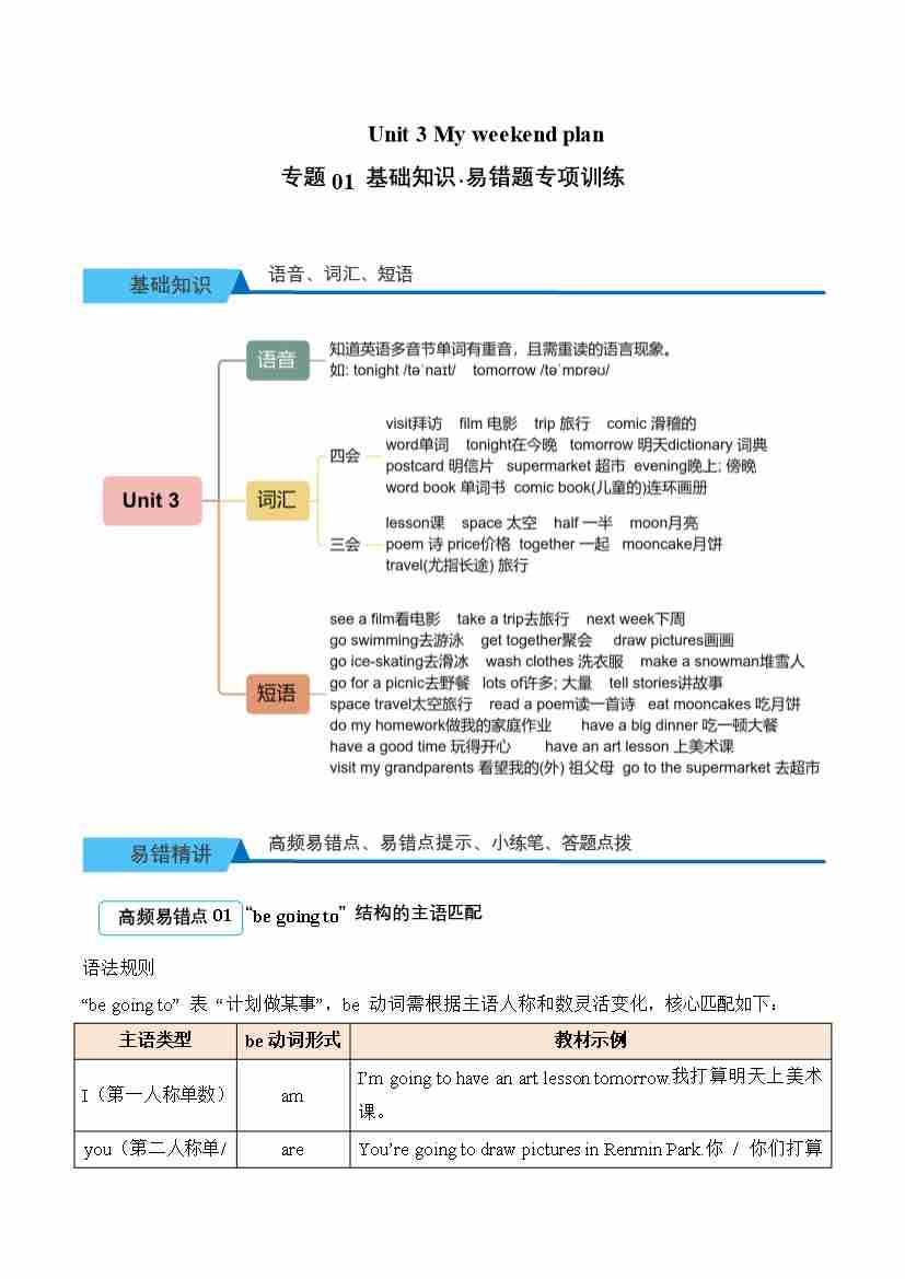 Unit3(易错题专项训练·基础知识)英语人教PEP版六年级上册