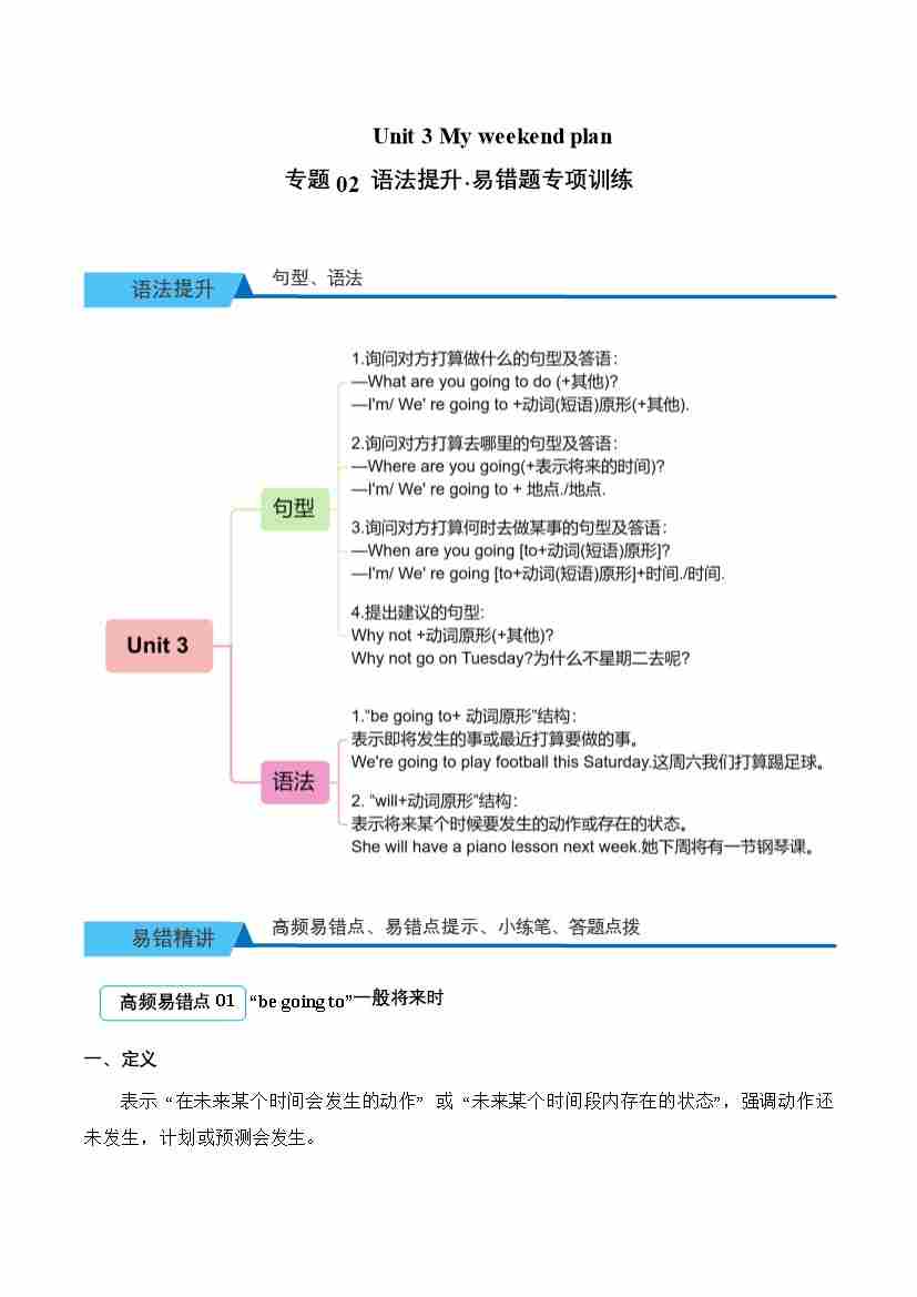 Unit3(易错题专项训练·语法提升)英语人教PEP版六年级上册