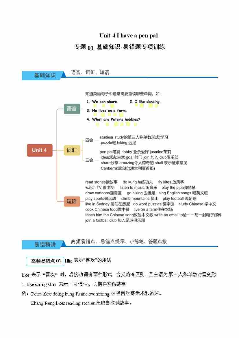 Unit4(易错题专项训练·基础知识)英语人教PEP版六年级上册