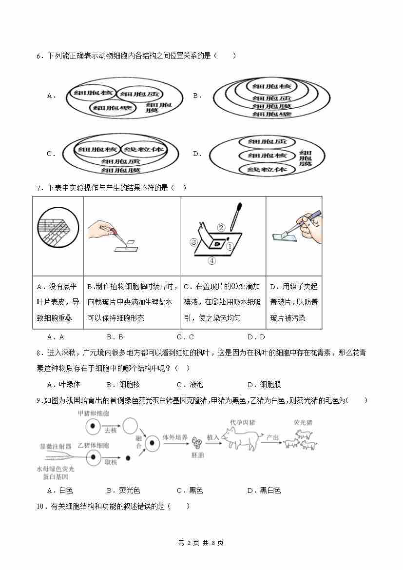 首页 > 全部 > 单元培优卷 > 第2章 认识细胞(基础通关卷)(原卷版)