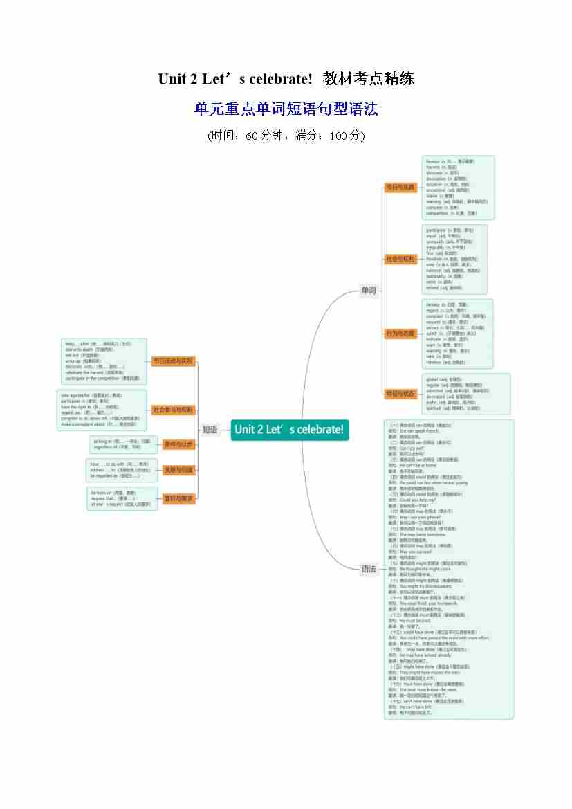 首页 > 全部 > 考点精炼 > Unit 2 Let’s celebrate! 单词短语句型语法(教材考点精练)(学生版)