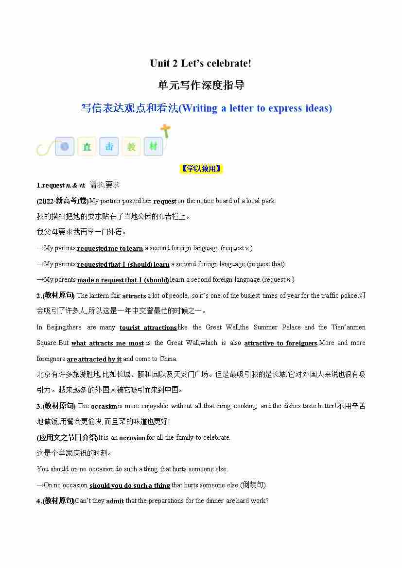 Unit 2 Let’s celebrate!(写信表达观点)(教师版)