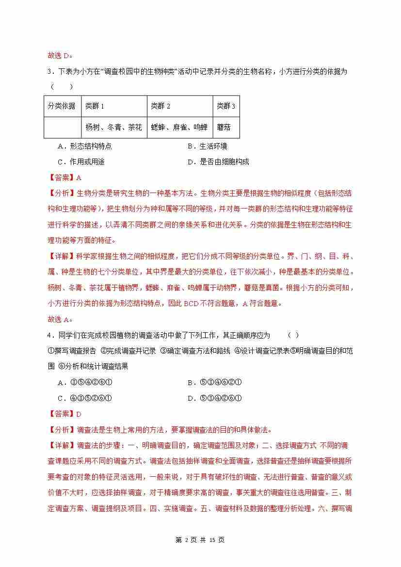 首页 > 全部 > 单元培优卷 > 第1章 认识生物(满分培优卷)(解析版)
