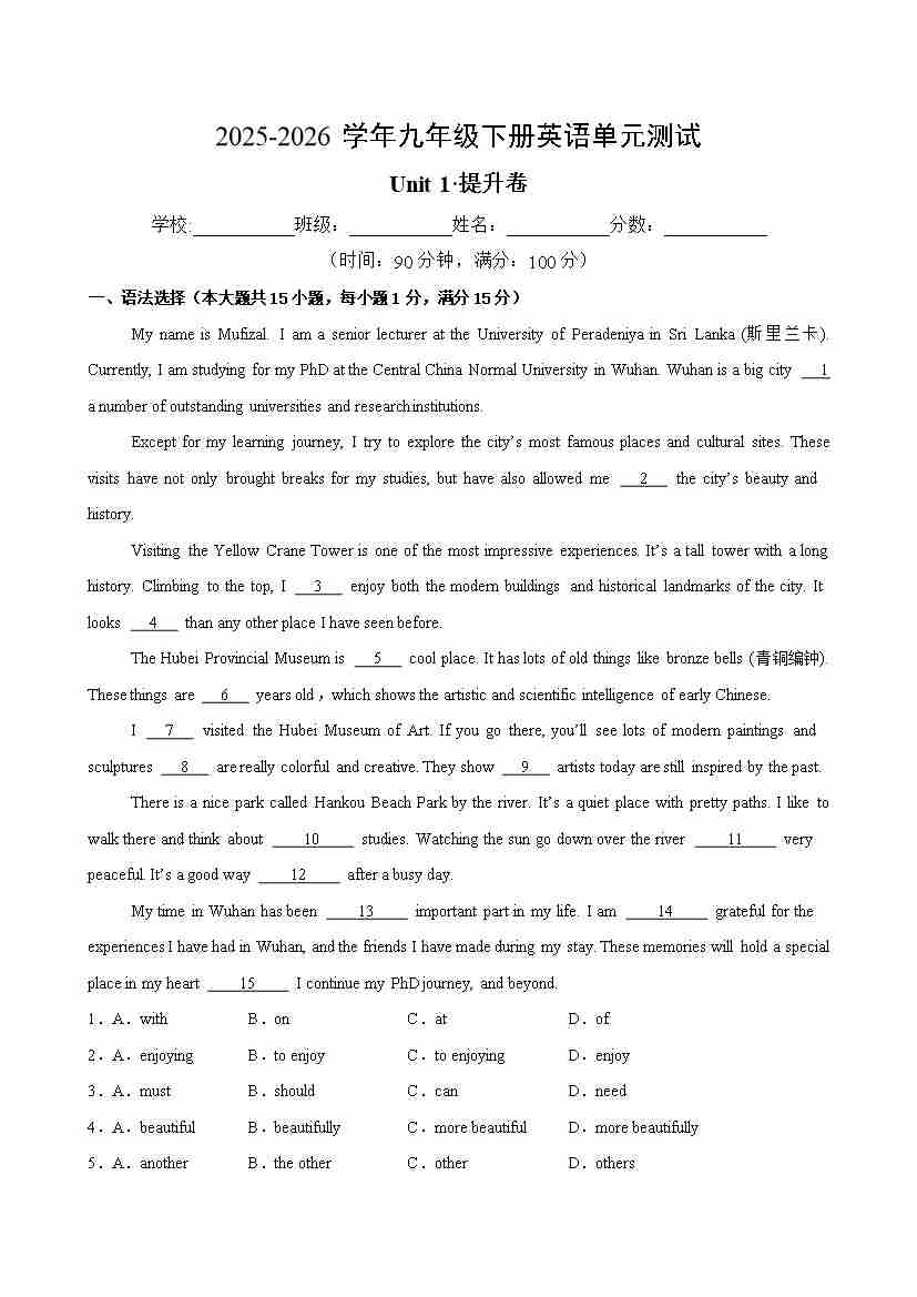 九年级英语下册Unit1单元测试·提升卷(解析版)