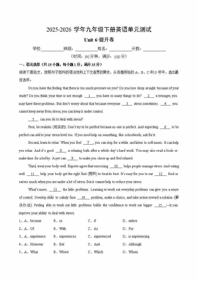 九年级英语下册Unit6单元测试·提升卷(解析版)