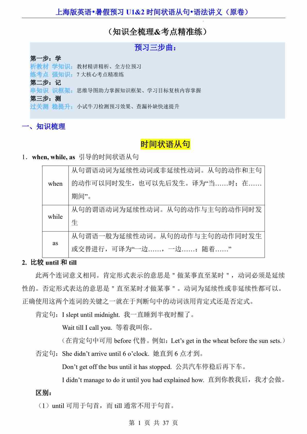 首页 > 全部 > 知识梳理 > -沪教54--版---Unit1&2时间状语从句•语法讲义