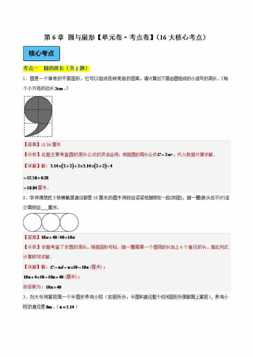 首页 > 全部 > 单元考点卷 > 第6章 圆与扇形(单元卷·考点卷)(16大核心考点)(教师版)