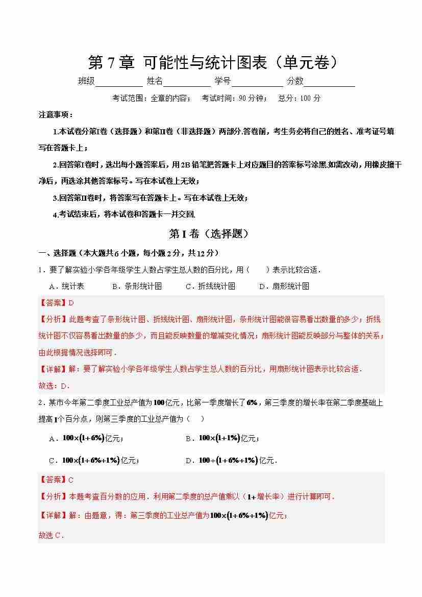 首页 > 全部 > 单元考点卷 > 第7章 可能性与统计图表(单元卷·测试卷)(教师版)