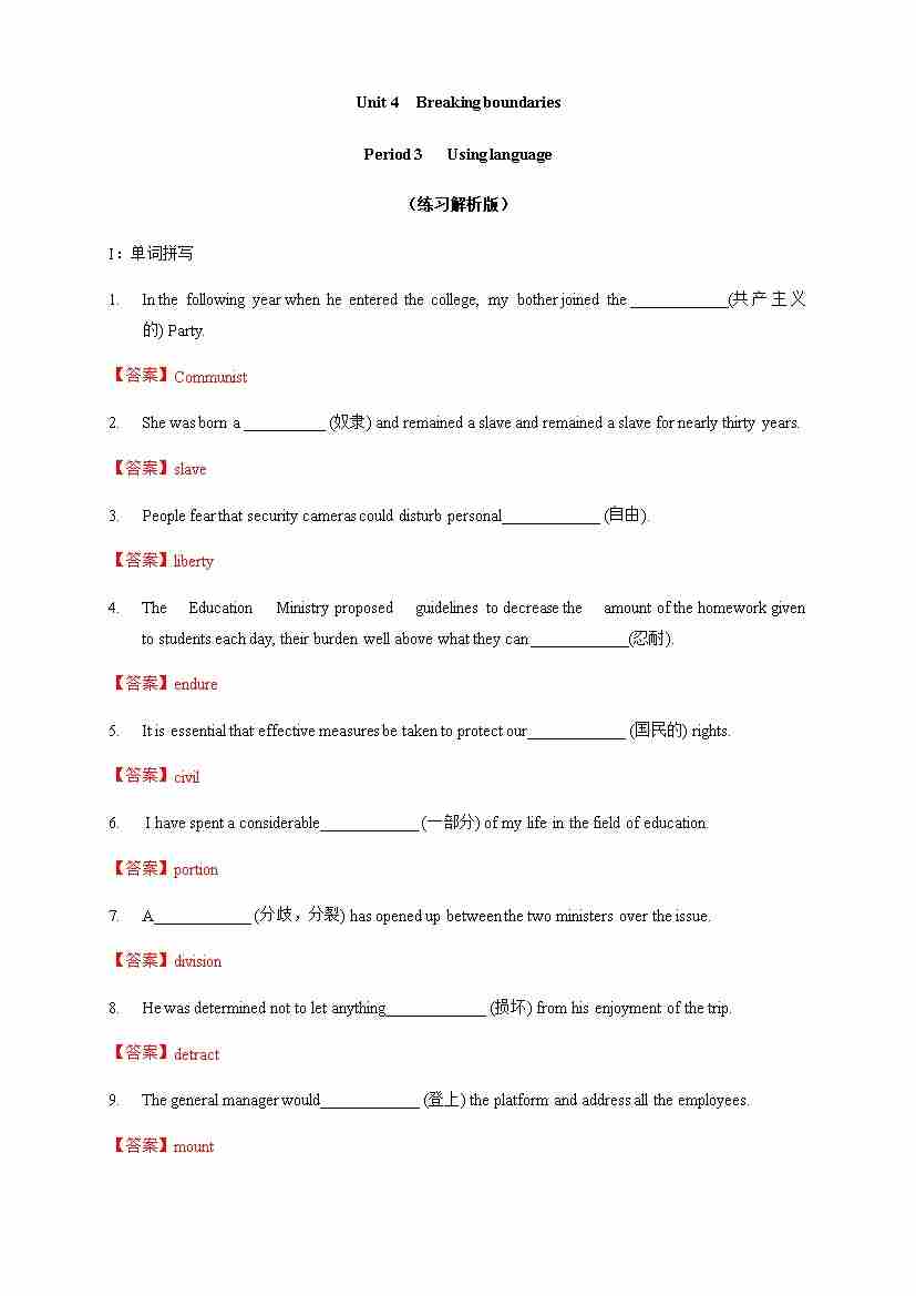 首页 > 全部 > 分层作业 > Unit 4 Breaking boundaries Period 3 Developing ideas and presenting ideas 练习(解析版)